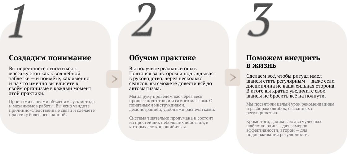 Наоборот — этот массаж нужен для того, чтобы как можно дольше придерживаться вашего привычного образа жизни.